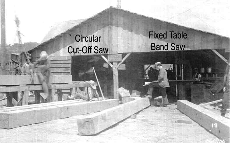 Feed stock lumber was locally grown 12 inch x 12 inch white oak timbers delivered by rail.